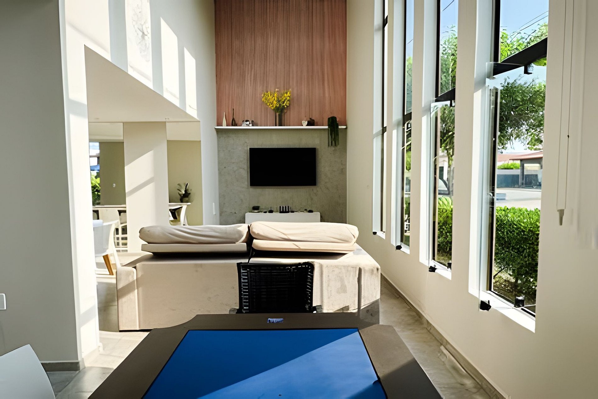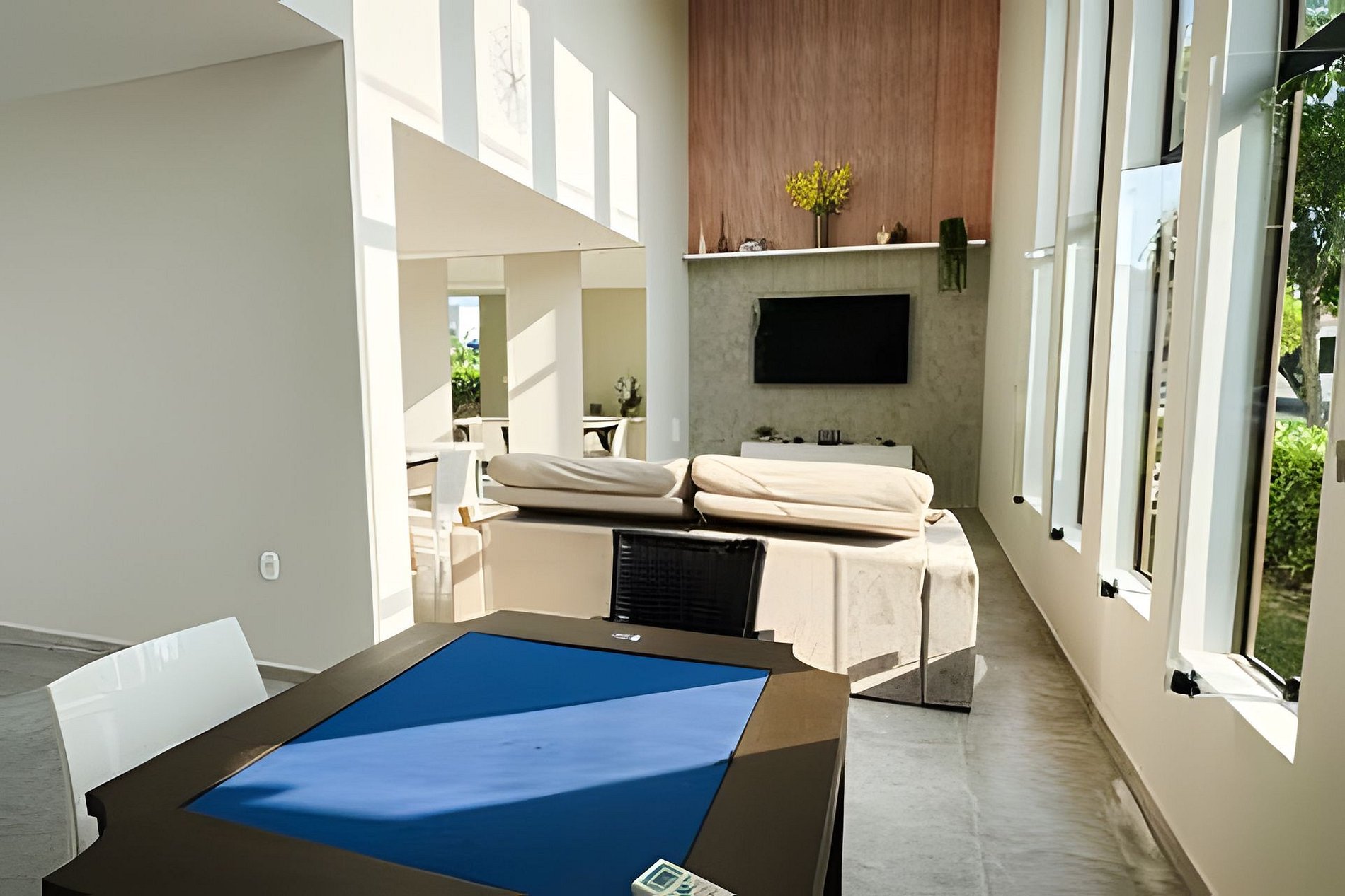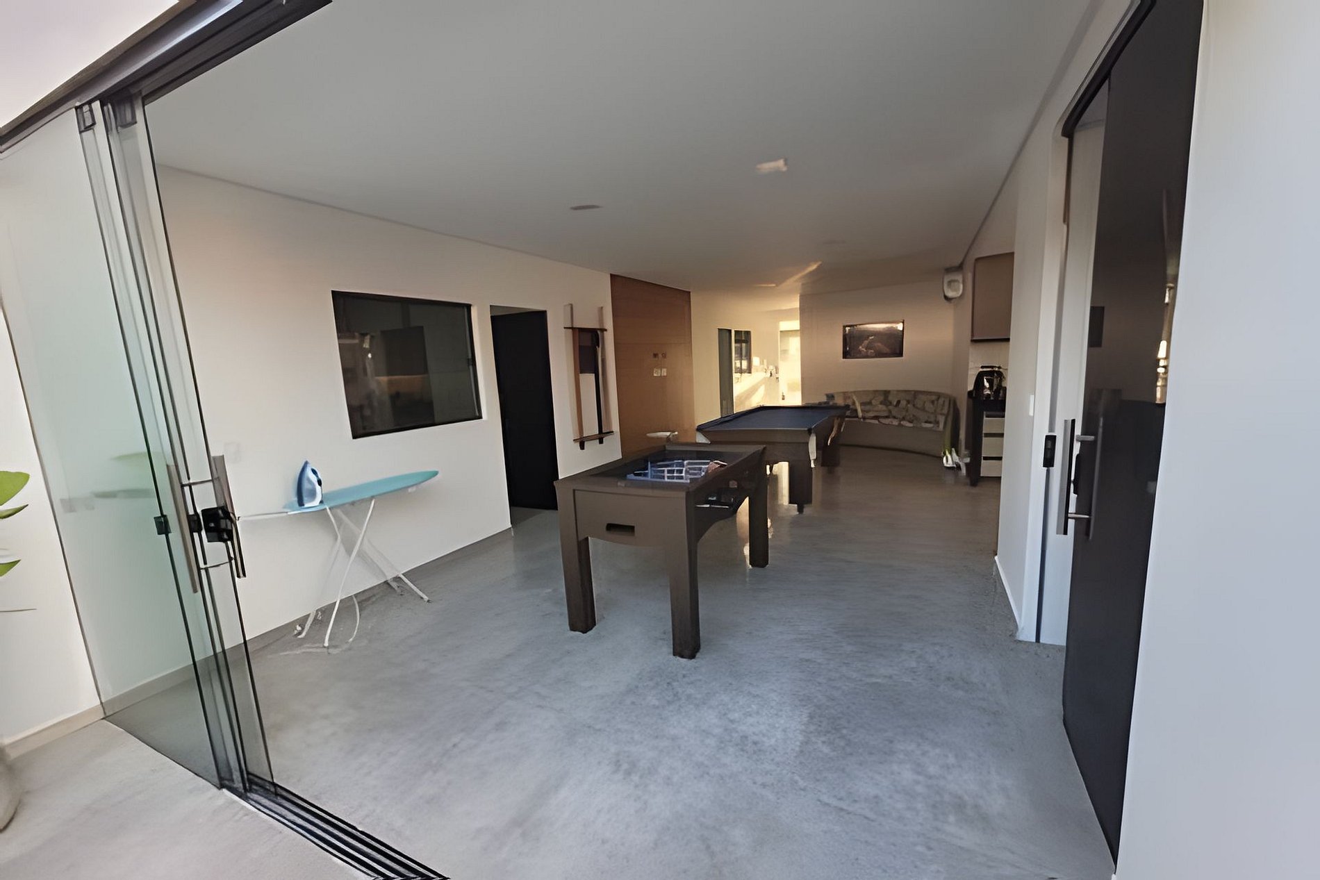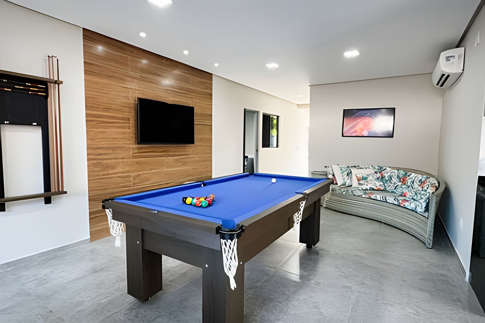 TV Smart nas salas, área gourmet e em 4 quartos. >Sala de jogos com sinuca, totó, mesa de carteado e cervejeira.