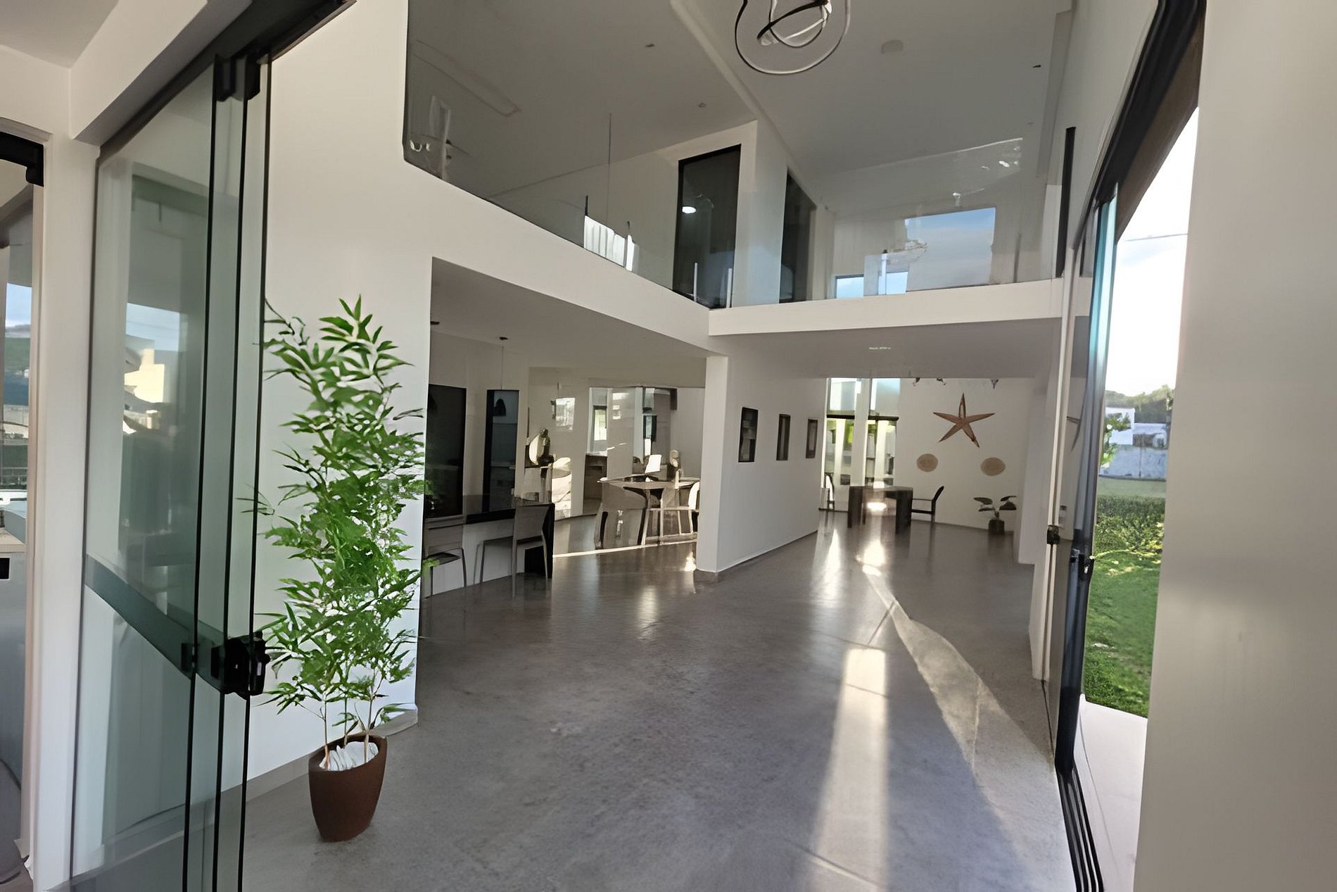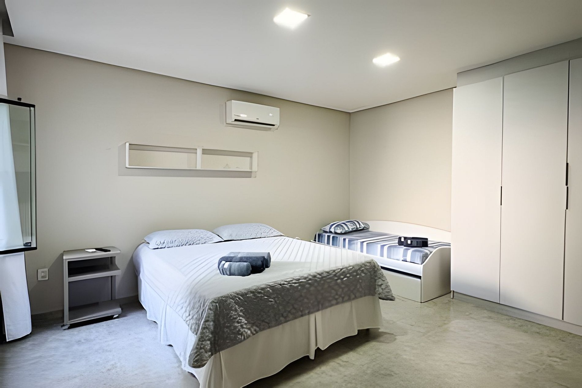 São 5 quartos, sendo destes 4 suítes, 1 banheiro social e 1 lavabo. Ar condicionado em todos os quartos e salas, secador em todos os banheiros.