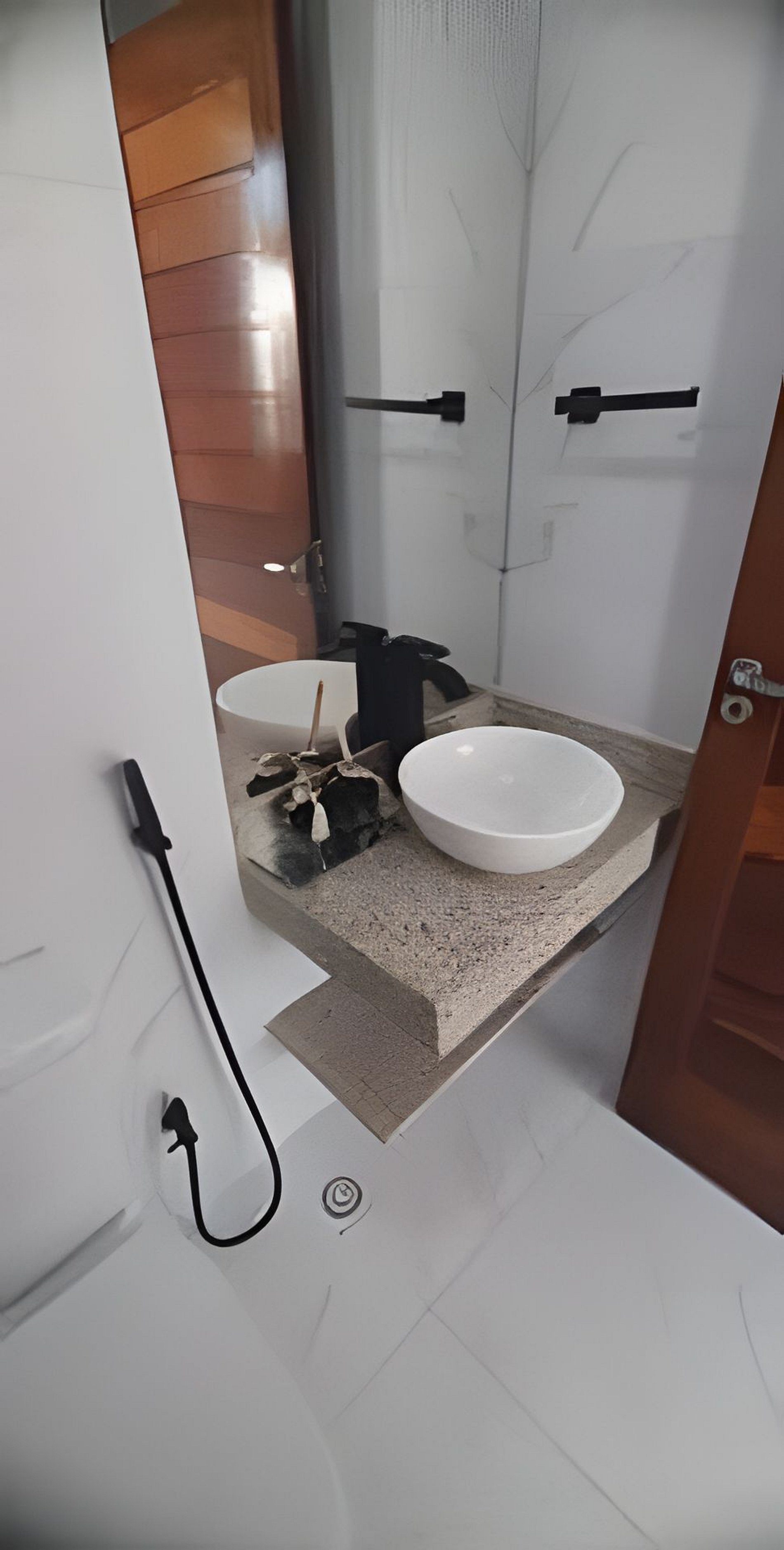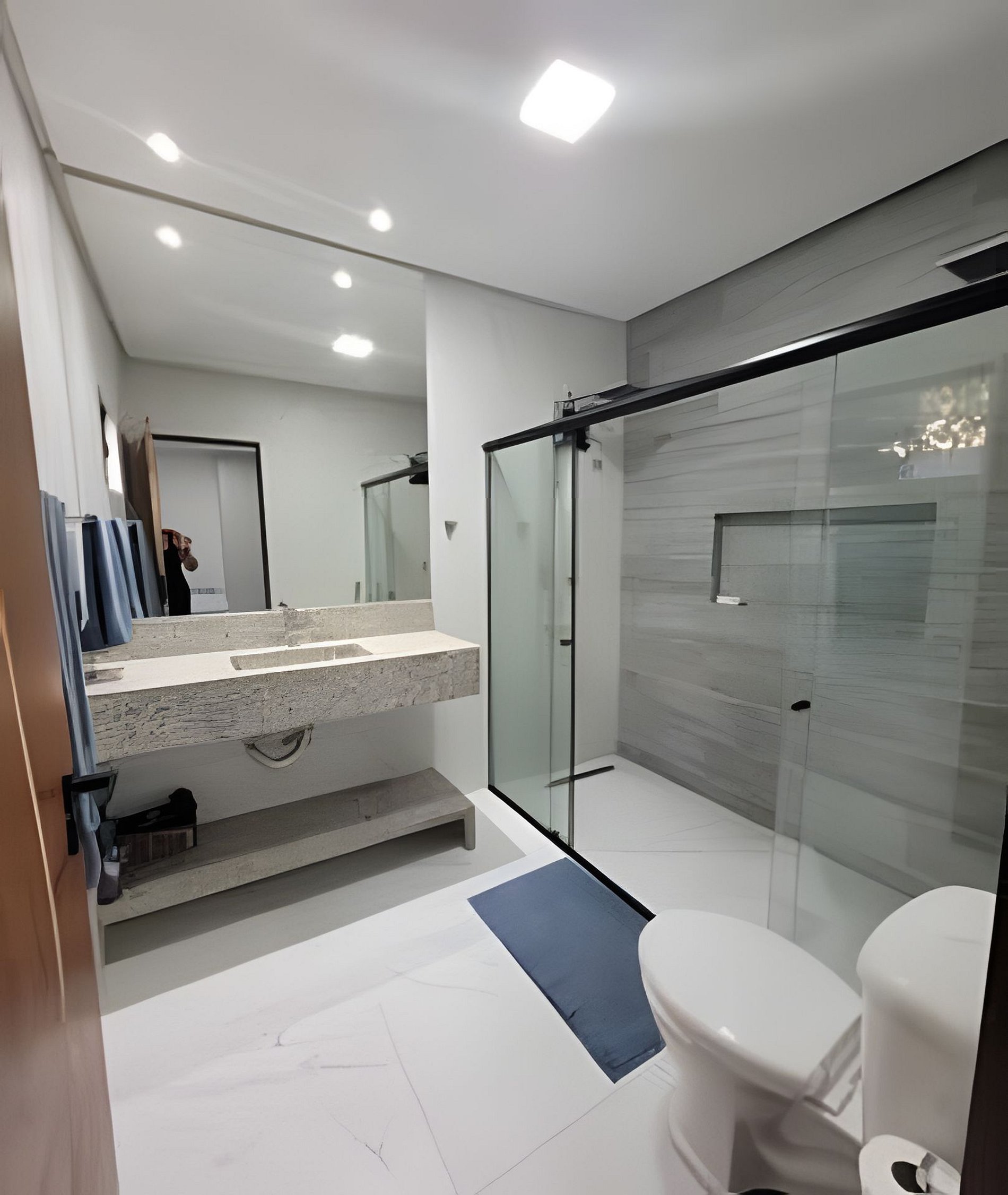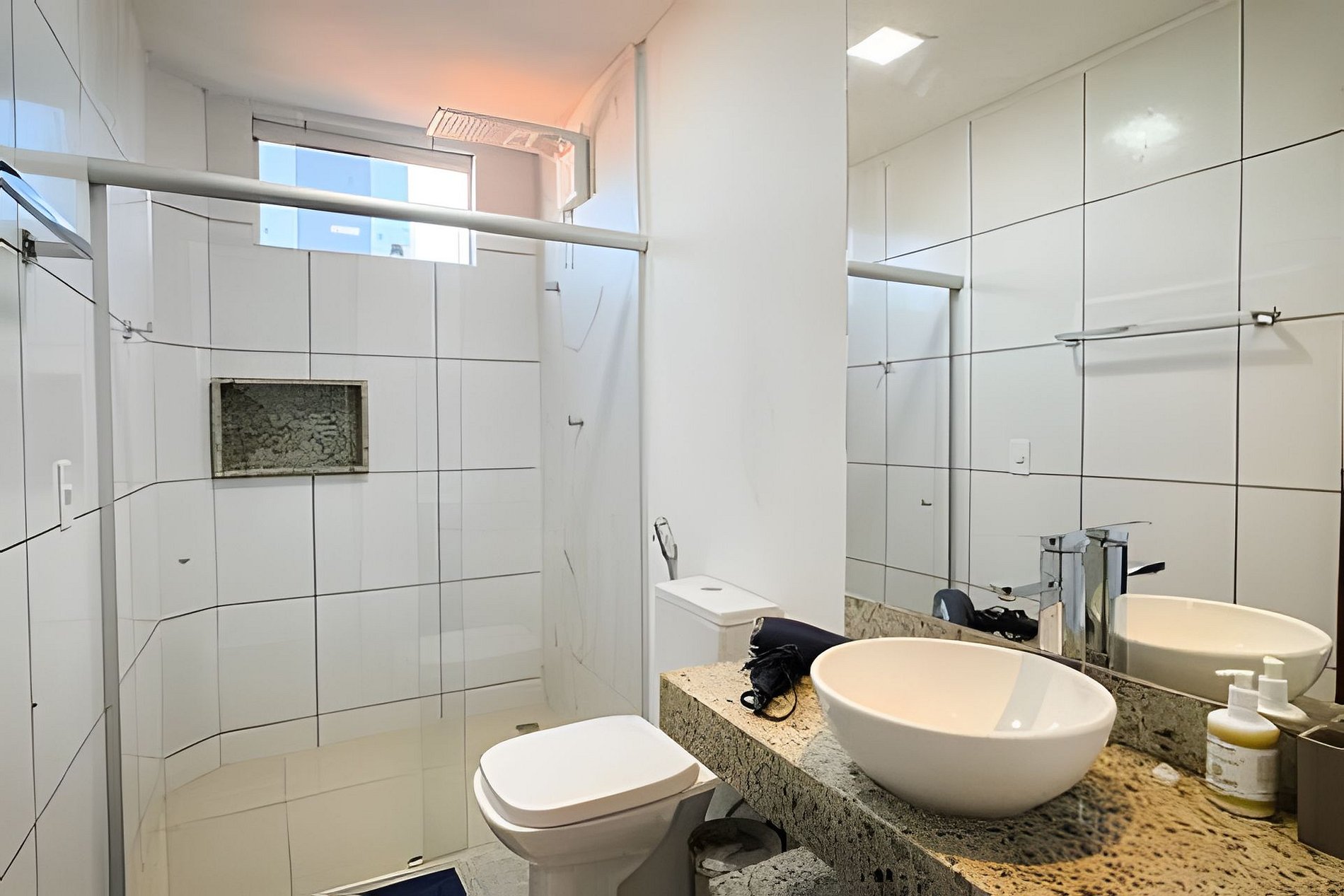 Os banheiros têm box com vidro, vaso com ducha higiênica.